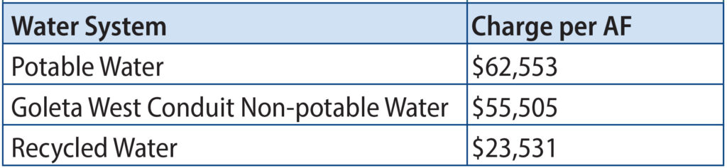 A: The District requires payment of a New Water Supply Charge for each acre-foot of new water entitlement needed. The current District charges for each type of water required for a project are included as an Appendix to the District Code, and are: